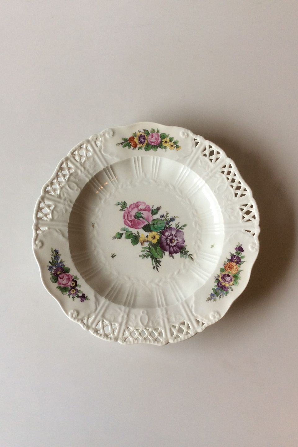 Royal Copenhagen Saksisk Blomst Middags-/Frugttallerken i luksusmodel med gennembrudt kant.
