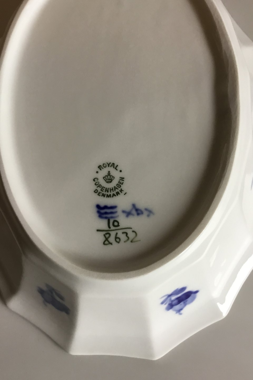 Royal Copenhagen Blå Blomst Kantet Oval Skål No 8632. Måler 24 cm x 18,5 cm