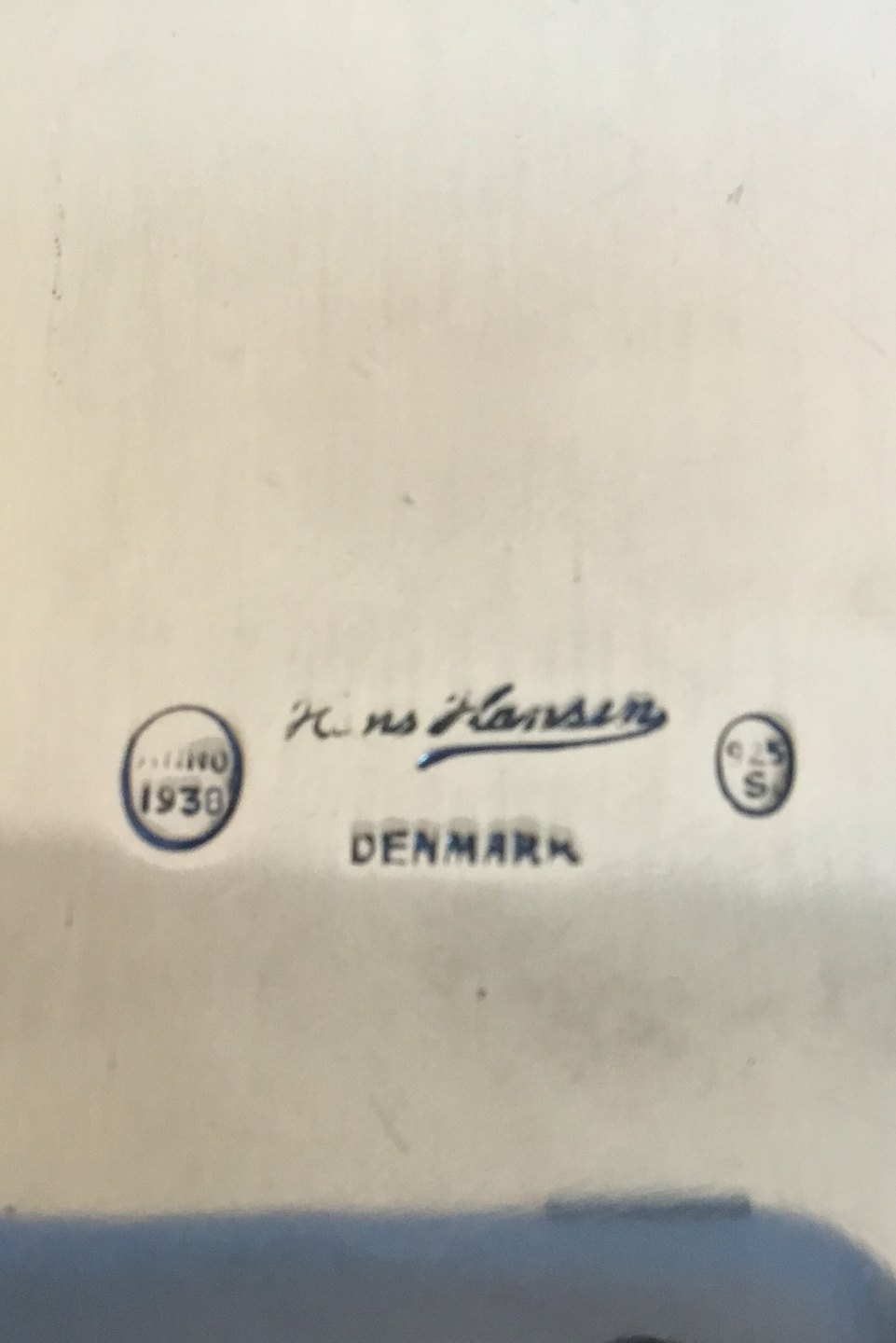 Hans Hansen Sterling Sølv Kaffesæt. Består af kaffekande , flødekande og sukkerskål. Håndtag af træ. Kaffekande 20,5 cm, vejer 619 gram. Flødekande 11,5 cm, vejer 222 gram. Sukkerskål 9 cm, vejer 400 gram.