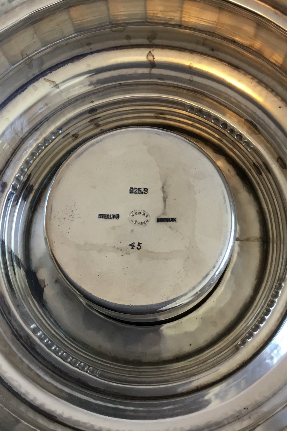 Georg Jensen Sterling Silver Cosmos Swing Tea Kettle no. 45. From 1925-1933. Measures 34 cm / 13 05/64 in. x 20 cm / 7 7/8. Weighs 1763 g / 62.20 oz.