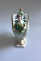 Dekoreret i farver og guld med blomster, hanke udformet som galionsfigurer holdende blomsterguirlander H.18 cm.