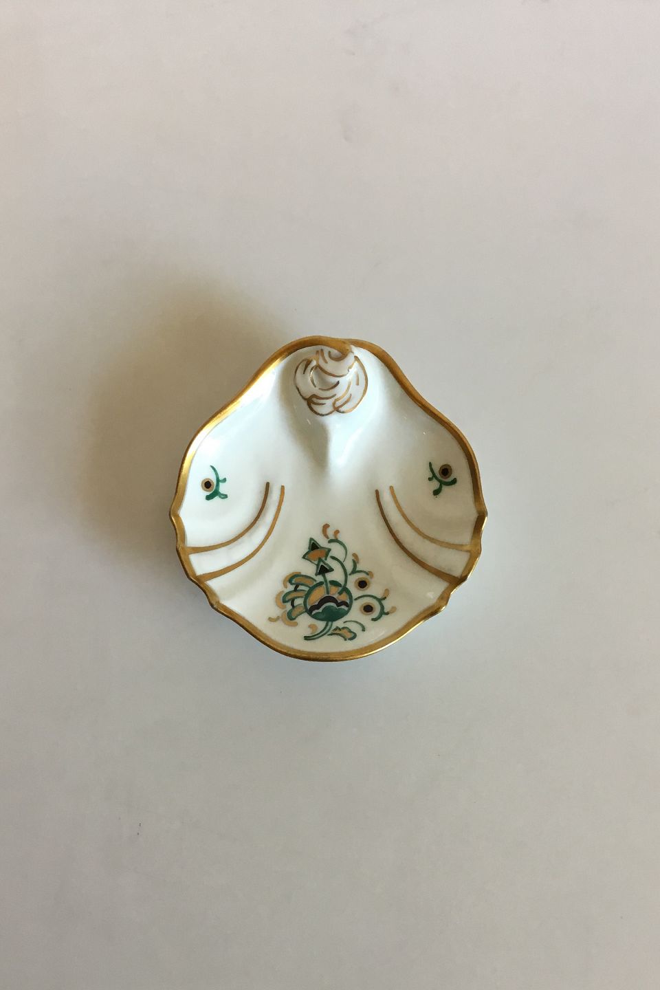 Dahl Jensen Dronning Lille Muslingeformet assiet. Måler 8,7 cm x 9 cm