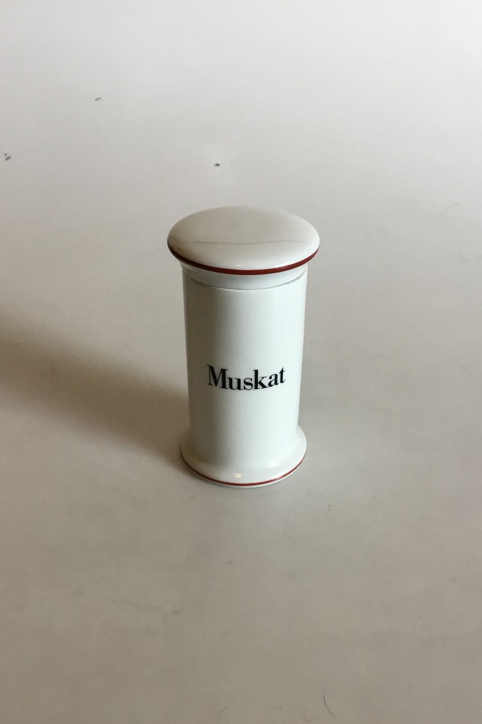 Bing & Grondahl Muskat (Nutmeg) Spice Jar No 497 from the Apothecary Collection designed by Bo Bonfils in the 1970s. 11 cm H (4 21/64")