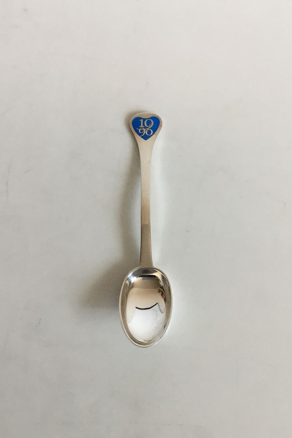 Hans Hansen Sterling Sølv Årsske 1990. Med Hjerte i blå emalje. Måler 16 cm