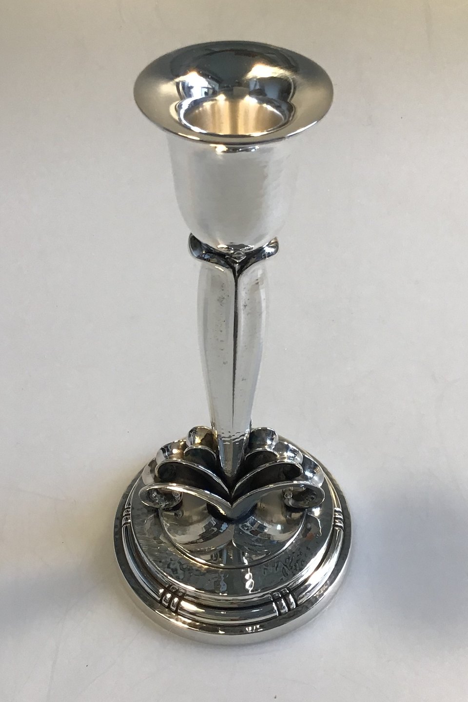 Evald Nielsen Sterling Sølv Enkeltstage Med løvdekoration på gradueret base H 20,0 cm Diam 9,5 cm Vægt 462 gr