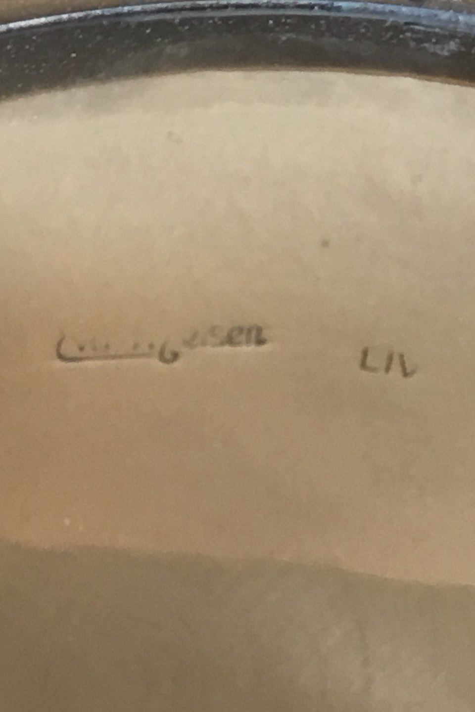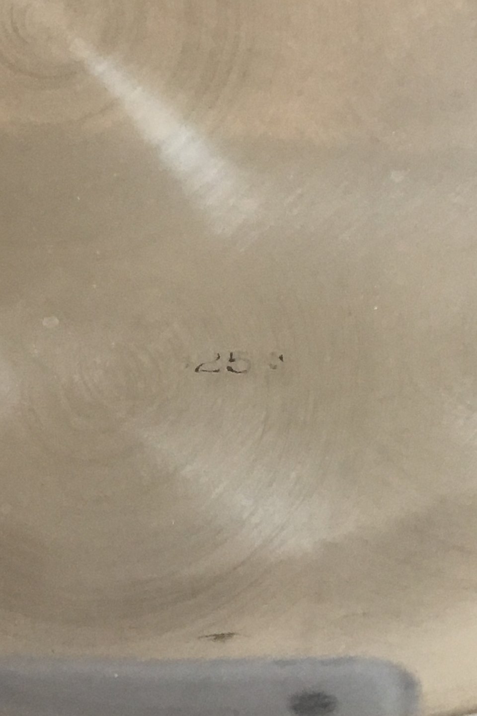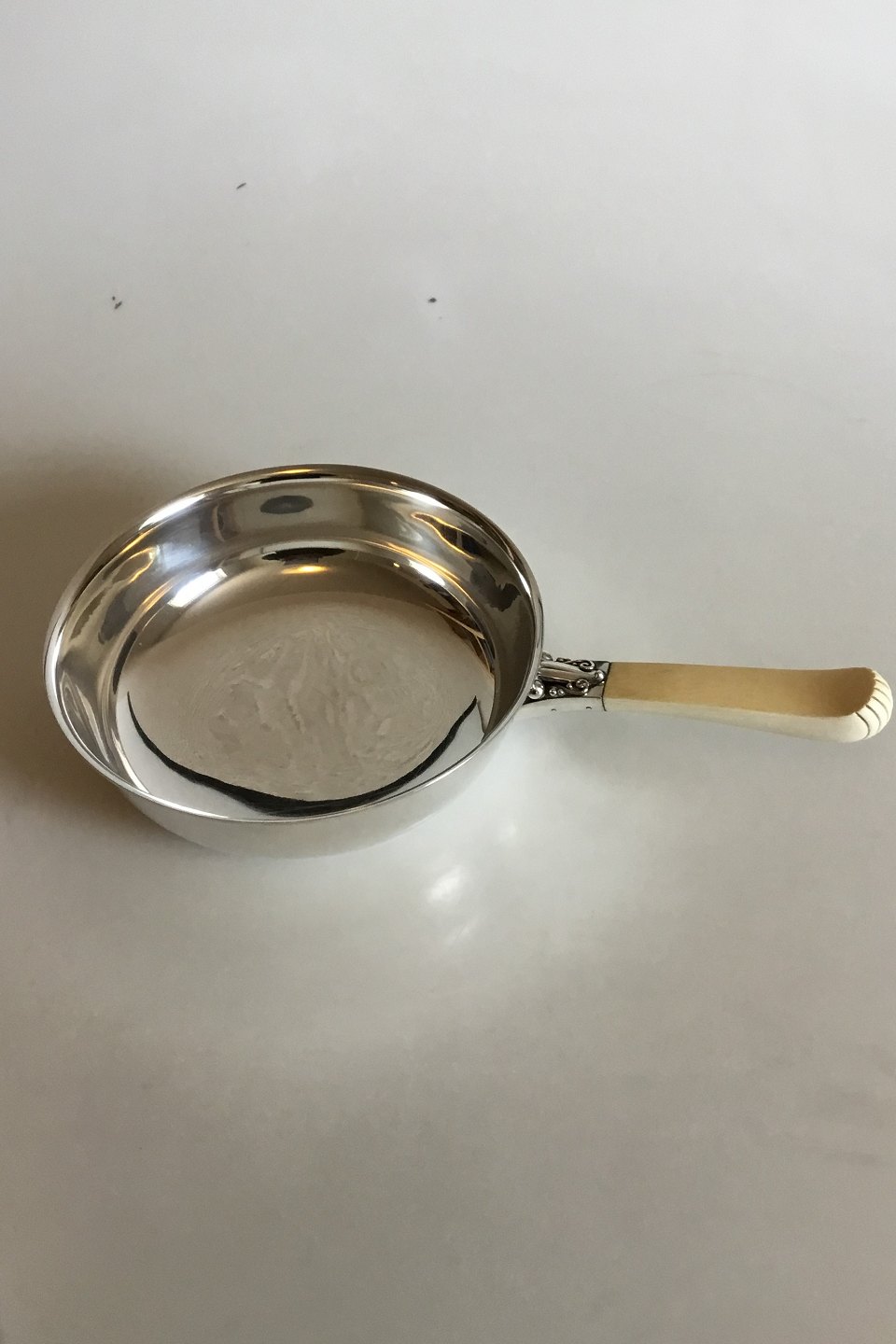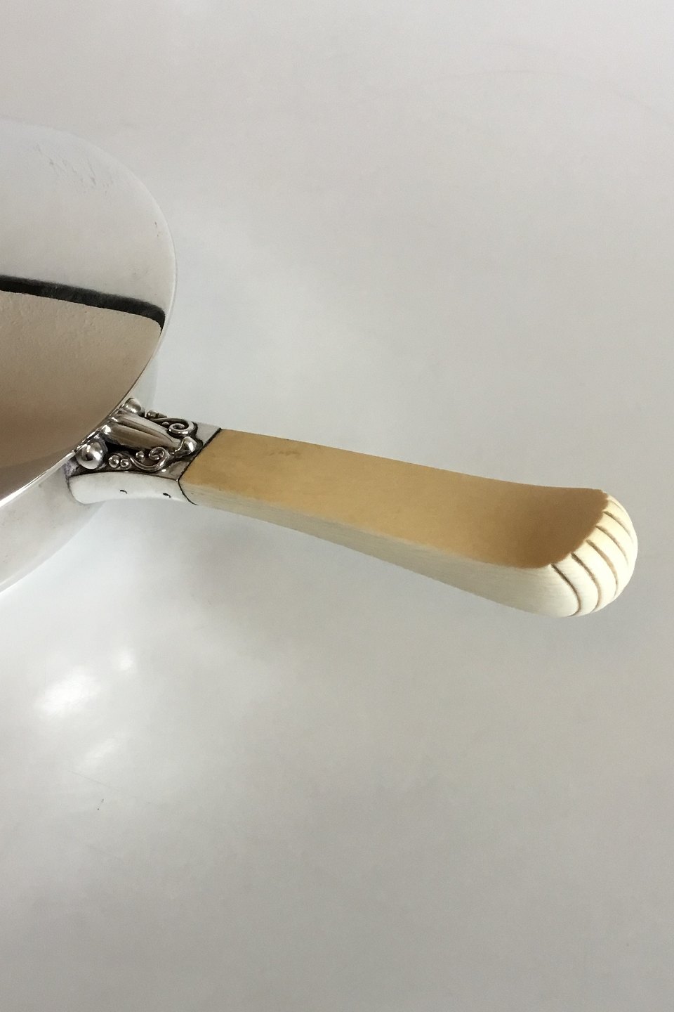 Evald Nielsen Sterling Sølv Lågfad med Lågknop og håndtag af udskåret Elfenben. Måler 34 cm. Vejer 813 gram.