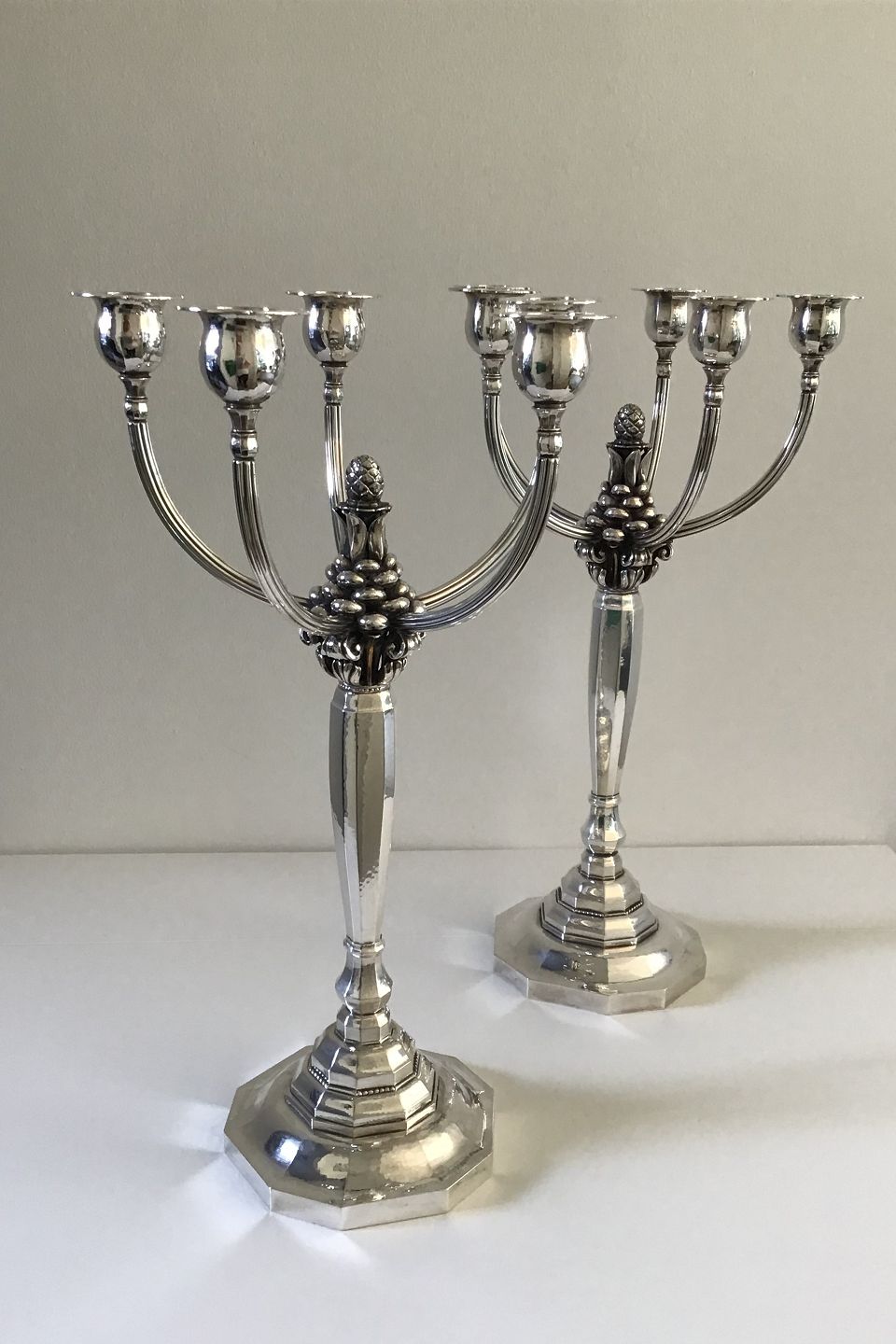 A Pair of Georg Jensen candelabra in sterling silver No 474