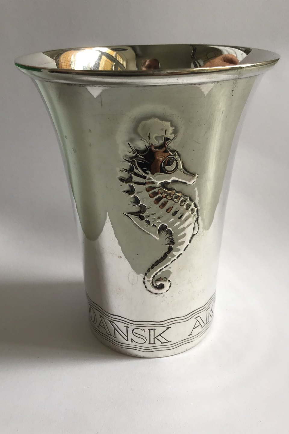 Evald Nielsen Silver Beaker "Dansk Akvarie Selskab" (Danish Fishtank Society)Decorated with Sea horse H 11,2 cm/4.40 Weight 144.2 gr/5.09 oz