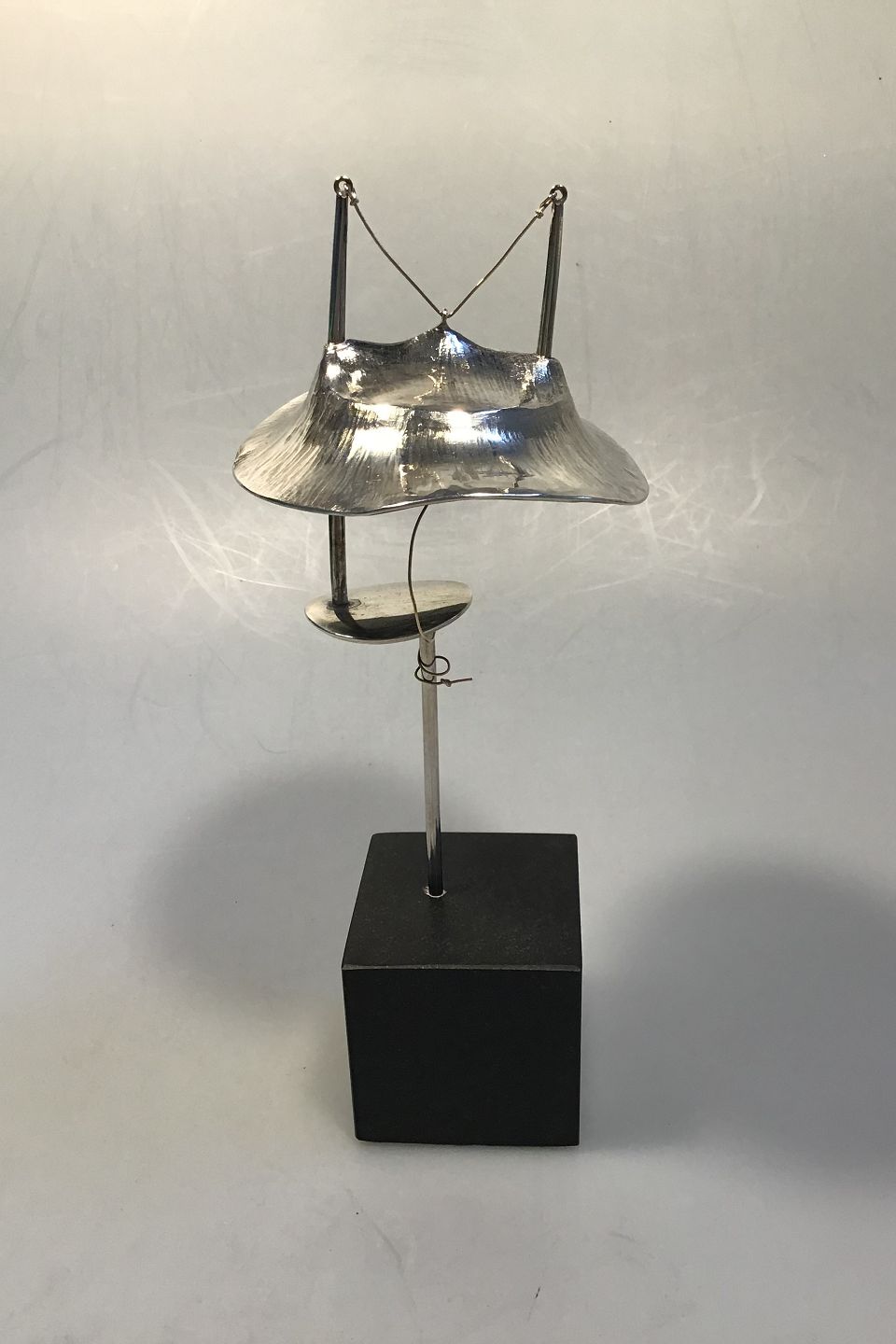 Georg Jensen Sterling Sølv "Cirkus Tent Unique C" Ole Bent Petersen 1979 Unikafigur på sort granit base H 21.5 cm