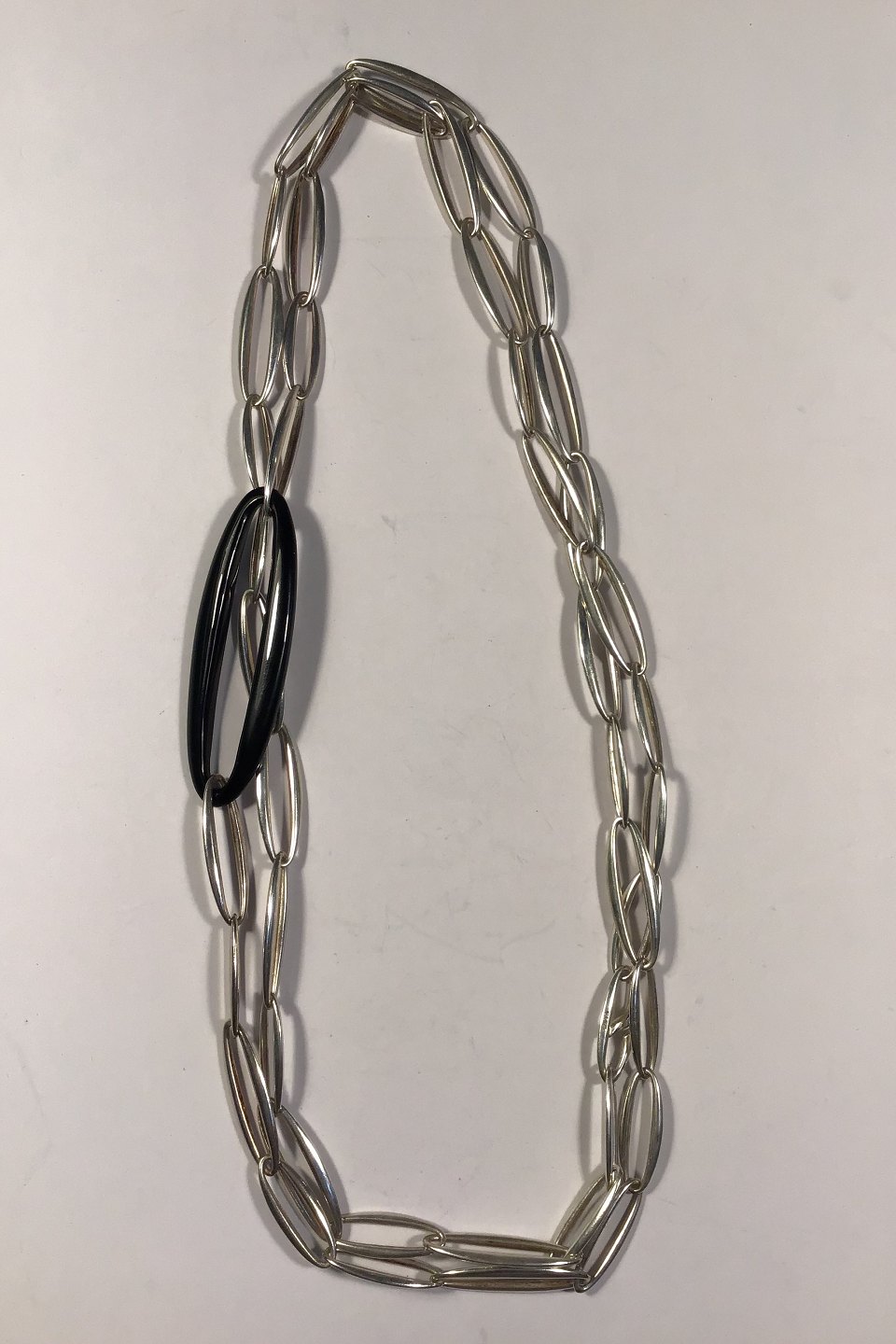 Georg Jensen Sterling Silver Necklace "Zephyr" No 500B with black Agate by Regitze Overgaard L 112 cm/44" Weight 78 gr/2.75 oz