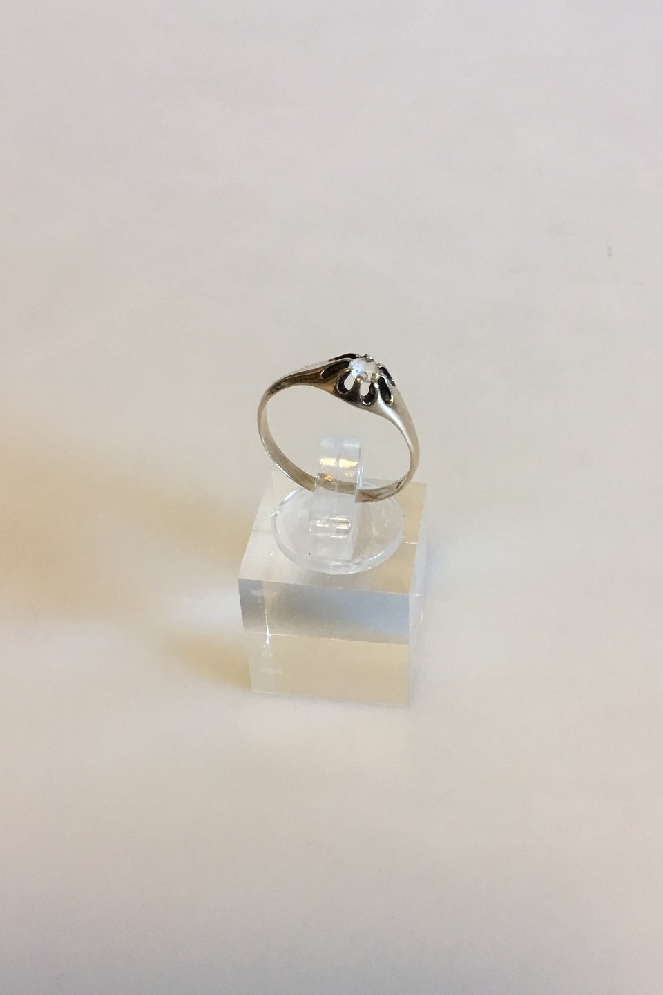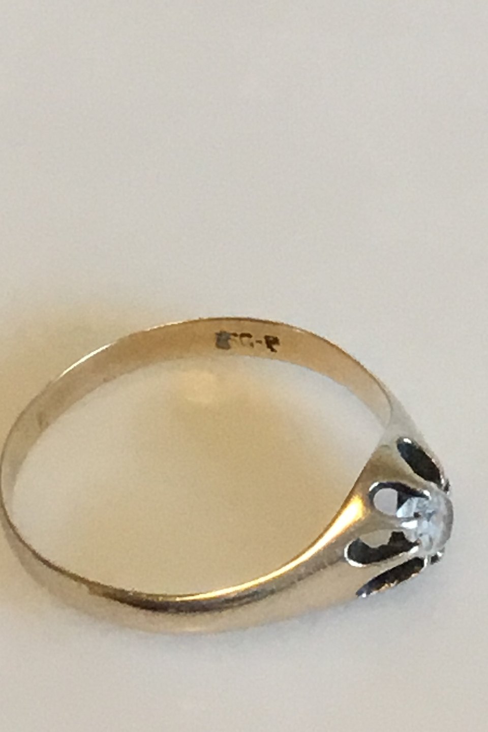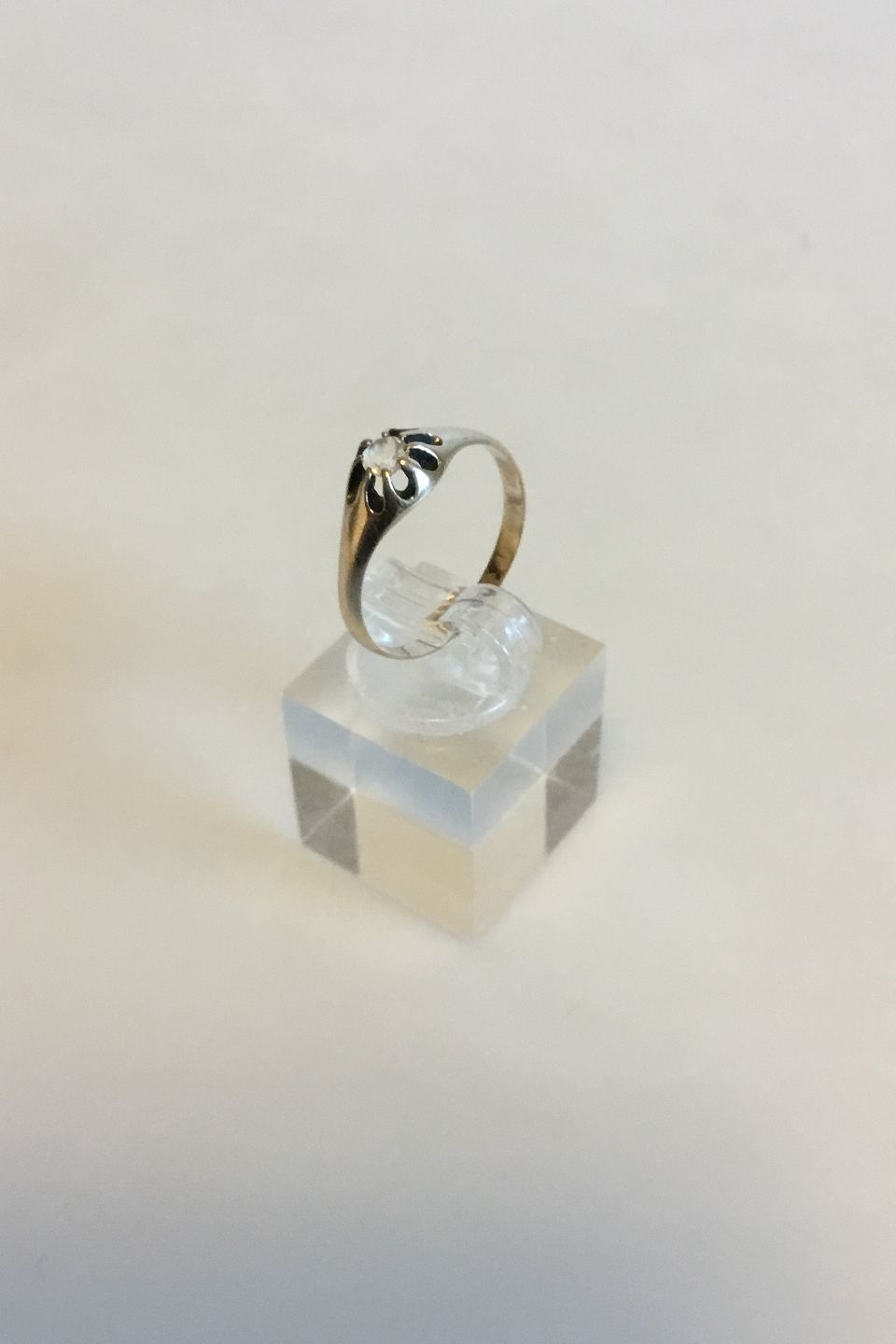 Guldring i 8 K med hvid safir. Ringstørrelse 56. Vejer 1,4 gram