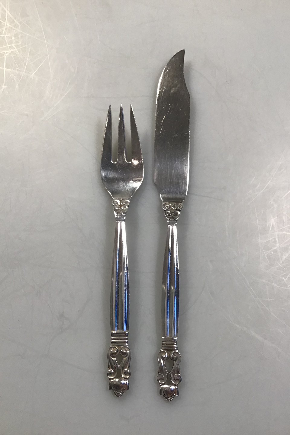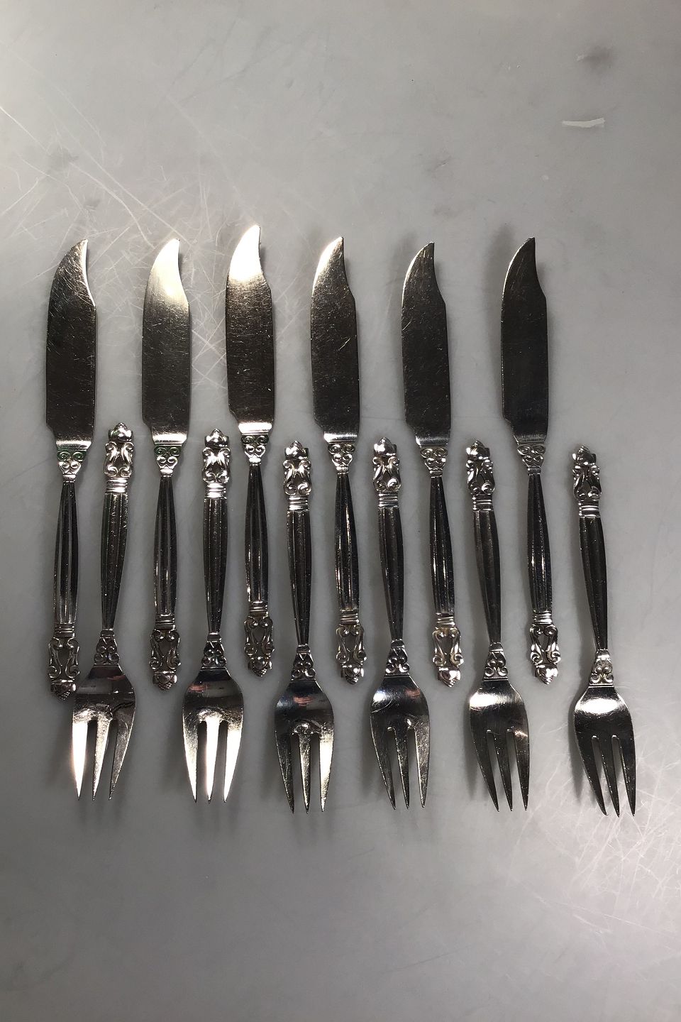 Georg Jensen Sterling Silver Acorn Fish Flatware No 061/062 Set for six people Combined weight 611gr/21.57 oz.