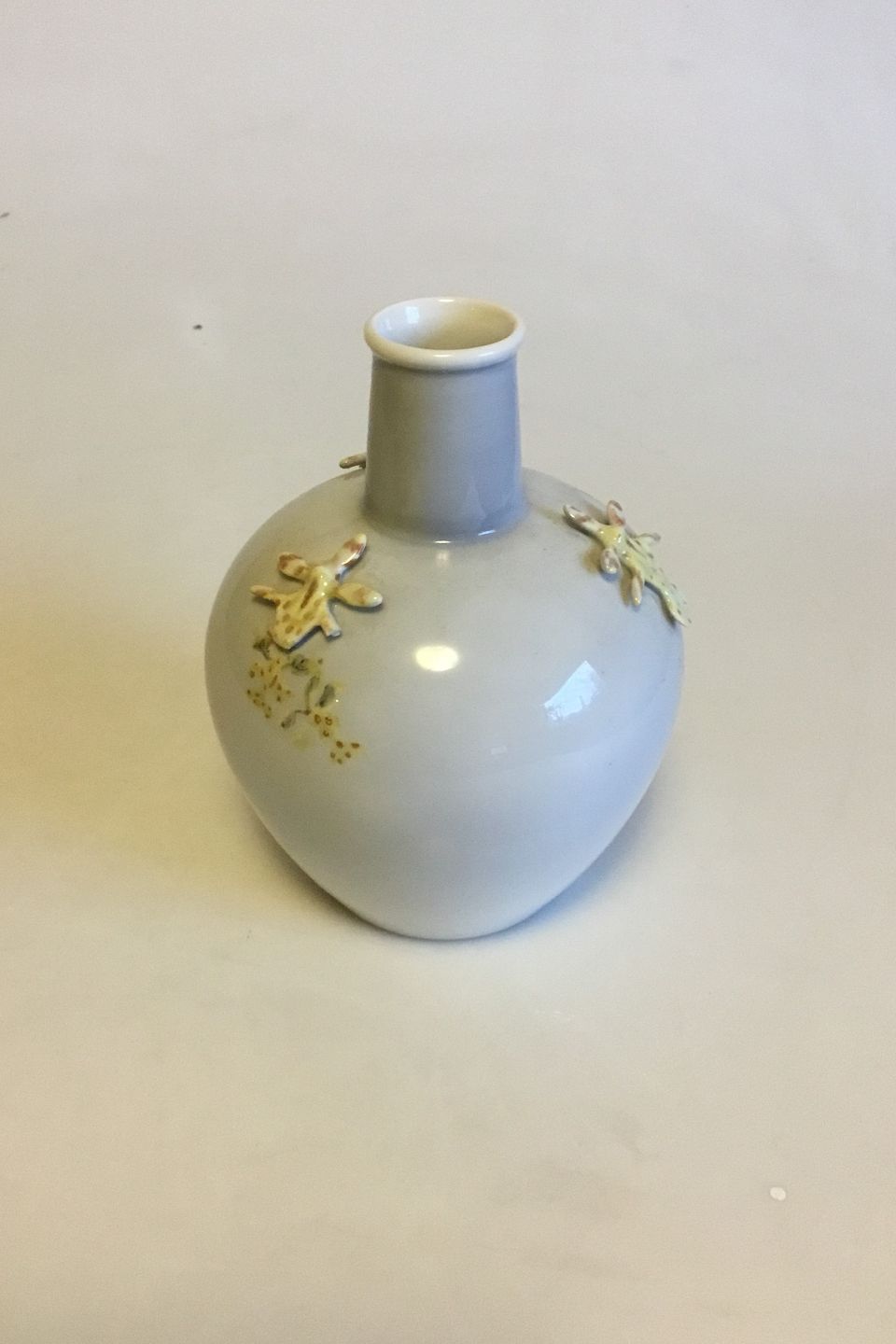 Royal Copenhagen Thorkild Olsen Vase dekoreret med tre orkideer. Måler 17,5 cm. Der er knækket tre små kronblade af