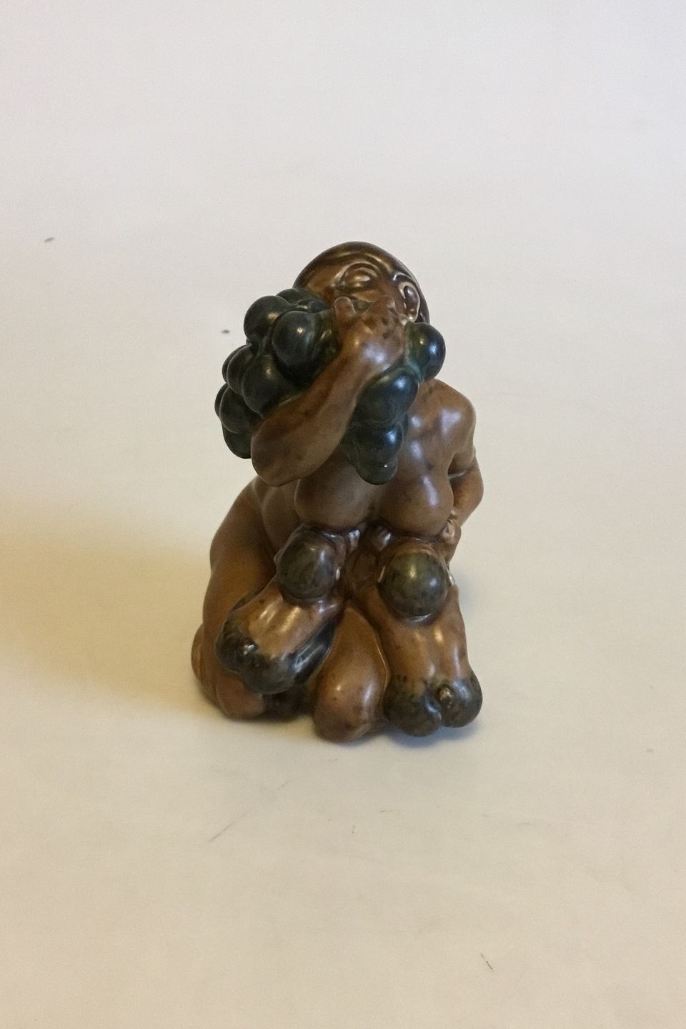 Bing & Grøndahl Figur af Kai Nielsen "Kvinde med druer og Faune" No 4022 fra Druehøstserien. Designet i ca. 1915. Måler 14 cm