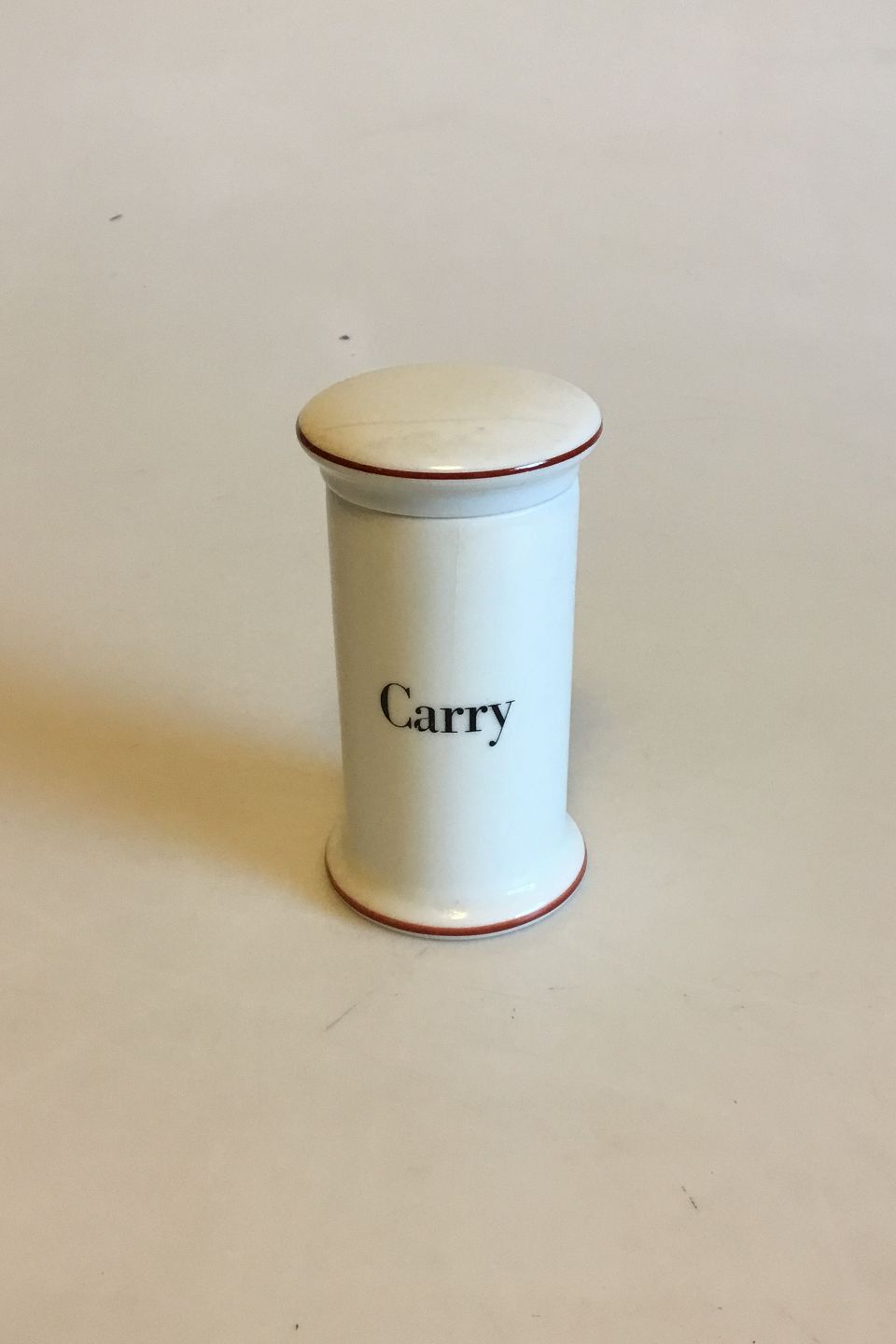 Bing & Grondahl Vitaminer Carry (Curry) Spice Jar No 497 from the Apothecary Collection designed by Bo Bonfils in the 1970s. 11 cm H (4 21/64")