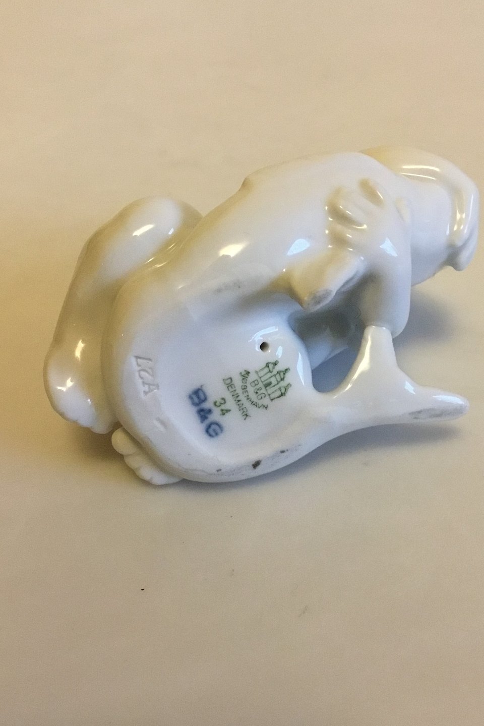 Bing & Grondahl Blanc de Chine Figurine of Child looking down at Fish No 4034. Designed by Kai Nielsen. Measures 7 cm / 2 3/4 in.