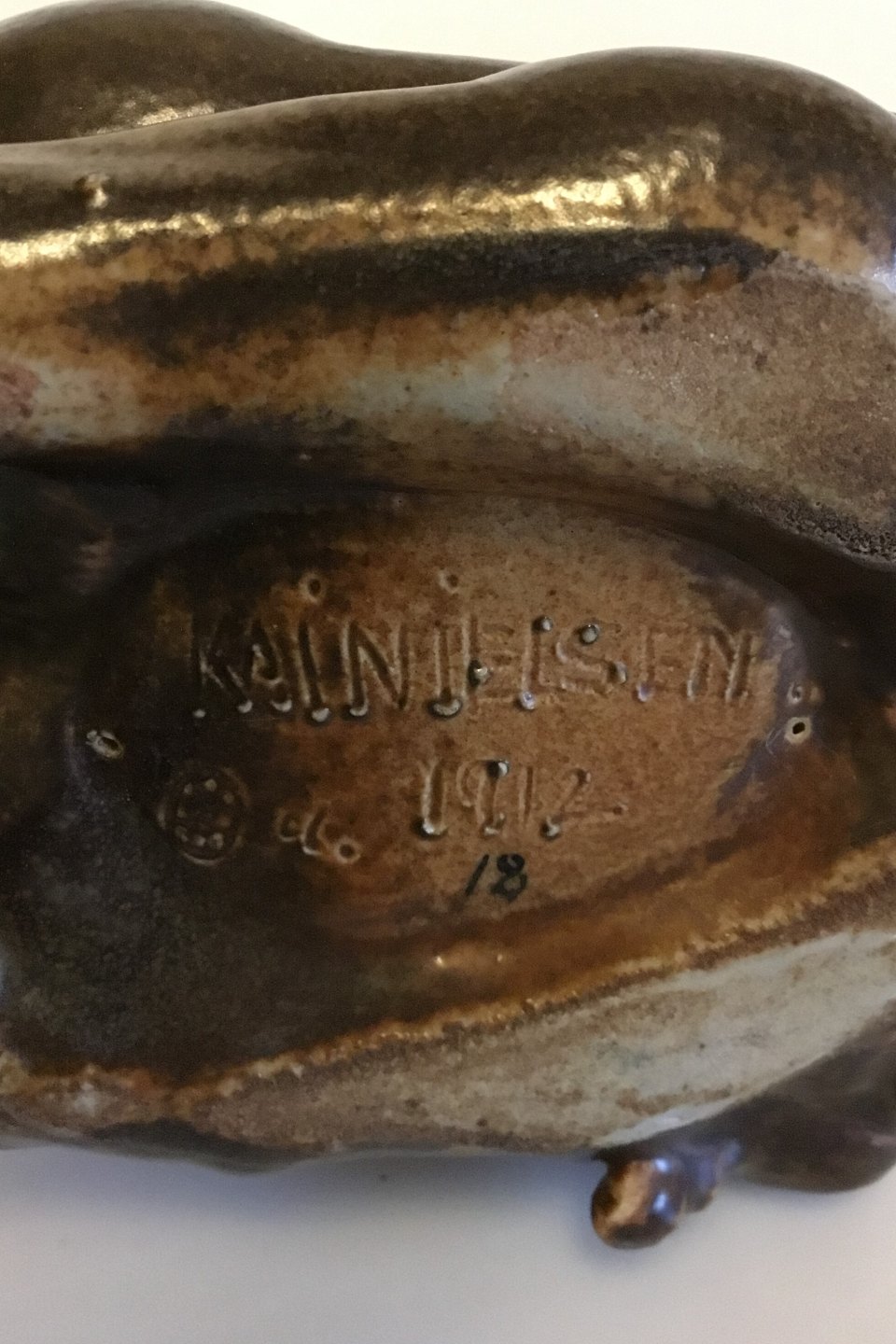 Bing & Grøndahl Figur af Kai Nielsen "Kvinde med druer og Faune" No 4022 fra Druehøstserien. Designet i ca. 1915. Måler 14 cm