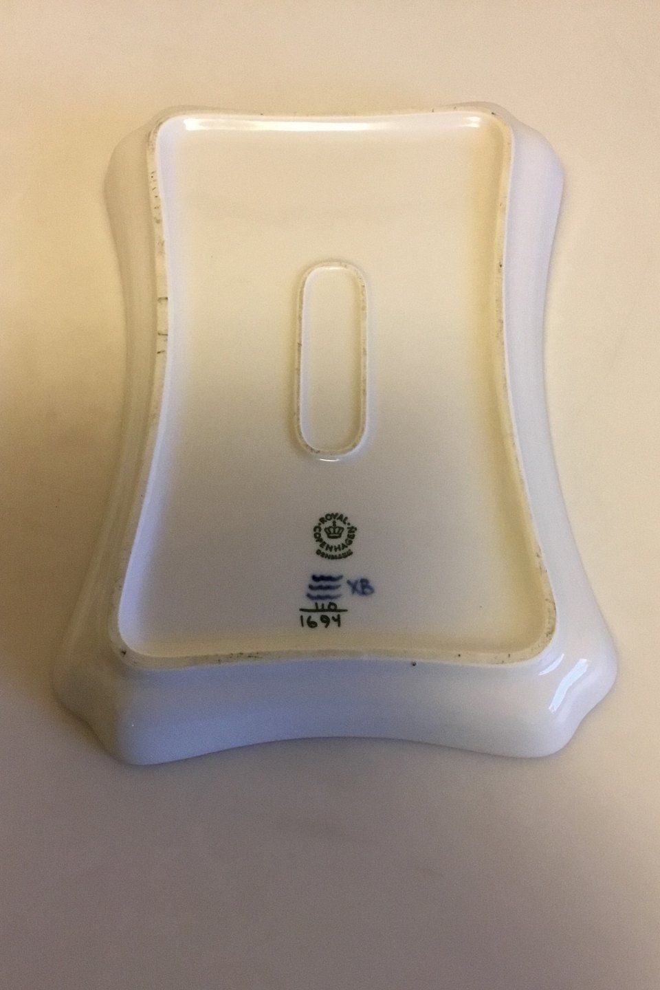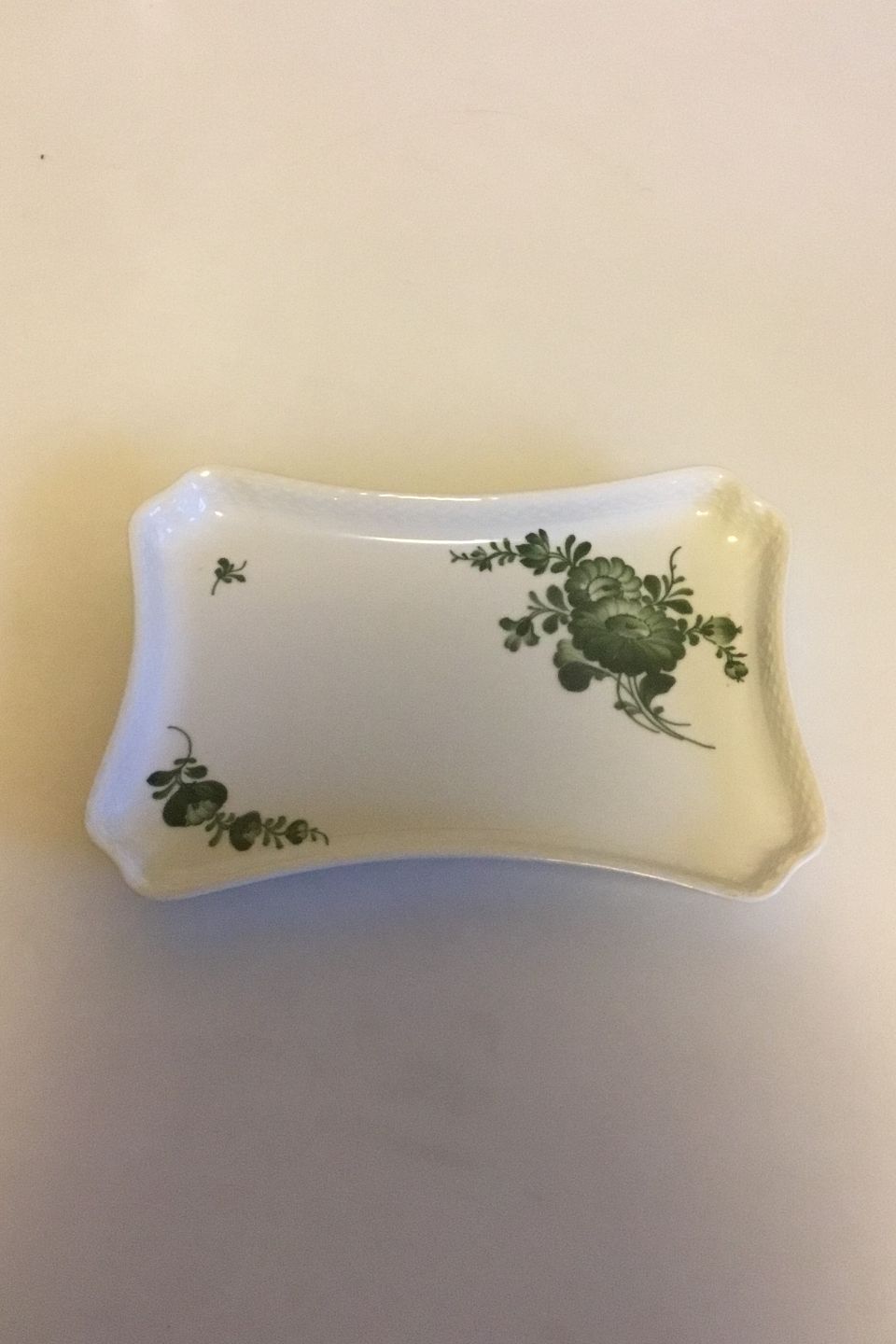 Royal Copenhagen Grøn Blomst Svejfet Rektangulært fad No 1694. Måler 23,5 cm x 16,5 cm