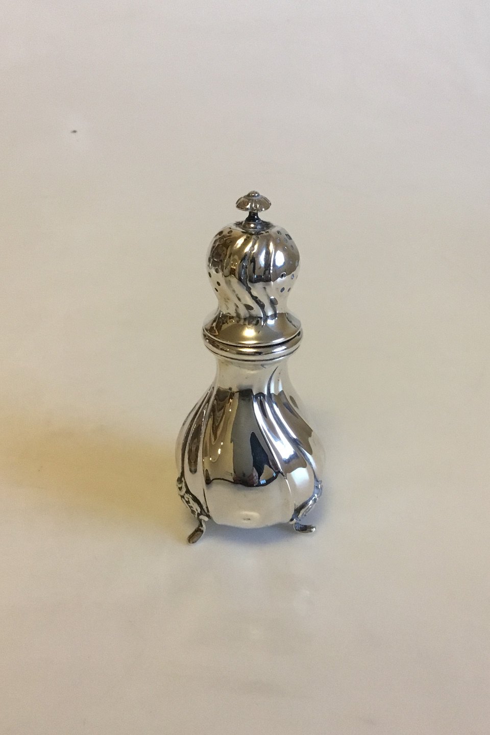 Skævknækket strøbøsse af Sølv. Måler 11,5 cm. Vejer 72,1 gram