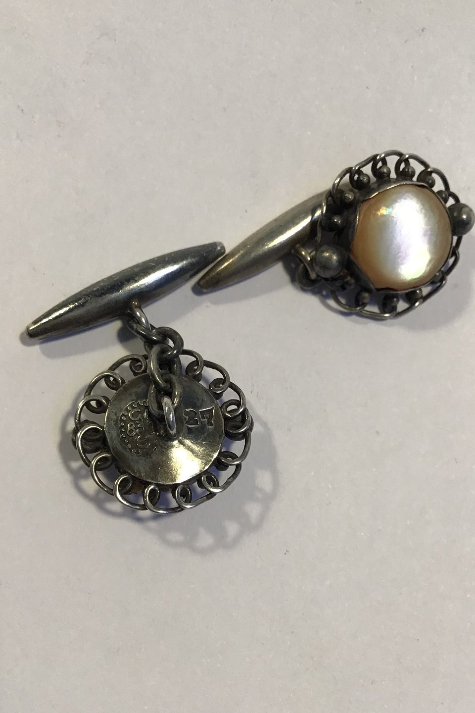 Georg Jensen Sølv Manchetknapper No 27 (1915-1927) Perlemor Diam 1.7 cm Samlet vægt 7.3 gr