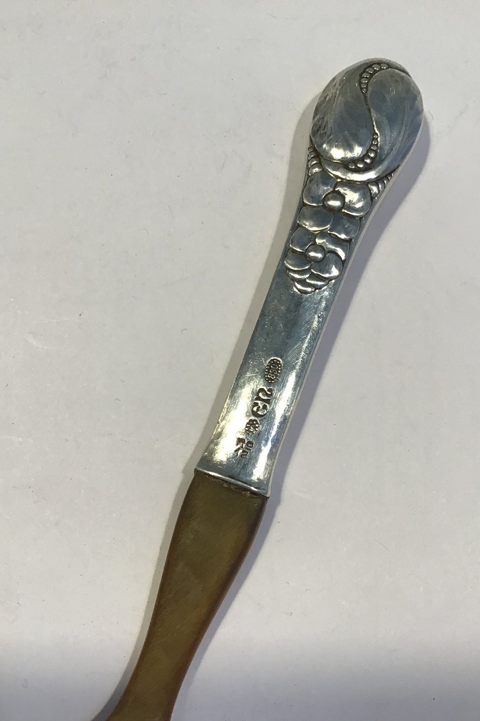 Evald Nielsen No 12 Sølv Salatgaffel med horn L 16.5 cm