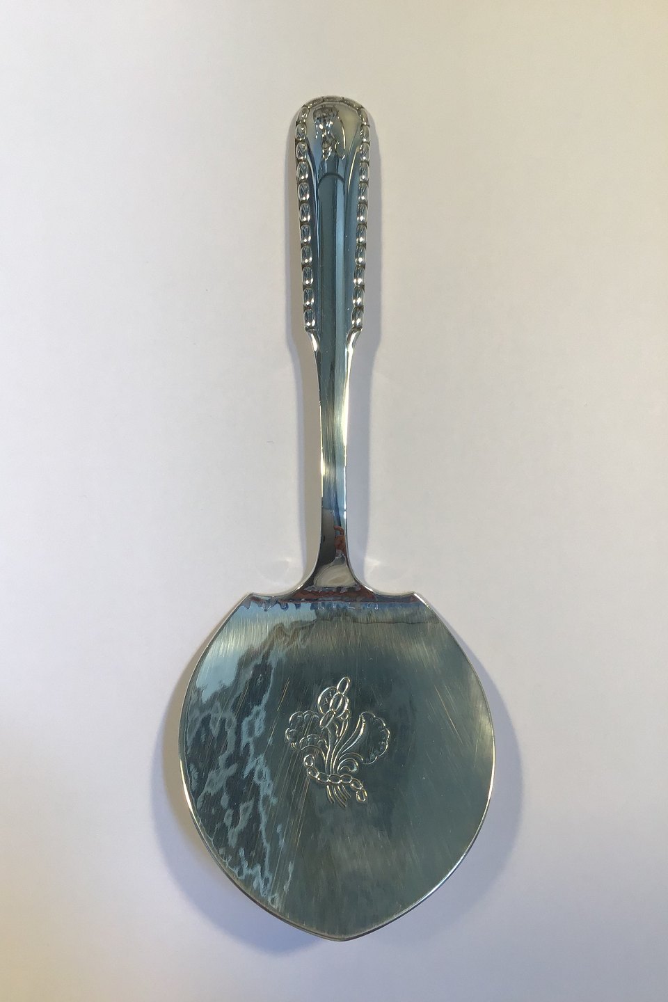 Georg Jensen Sølv Perle Serveringsspade Blomstermotiv på blad No 153. Måler 20,5 cm