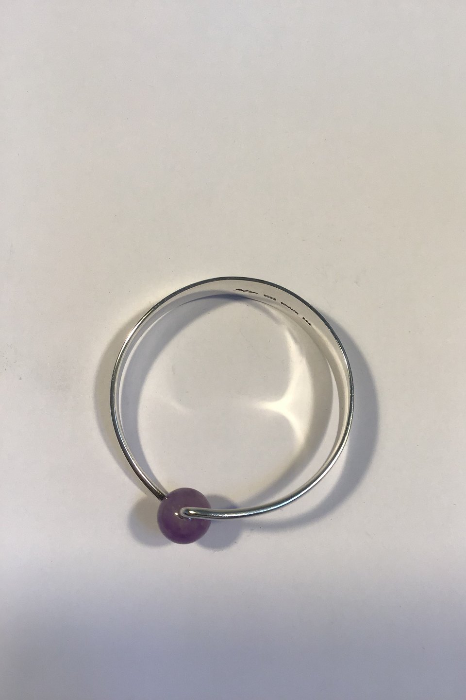 Hans Hansen Sterling Sølv Armring No 244 med Ametyst Måler 6.2 cm invendigt Vægt 39 gr