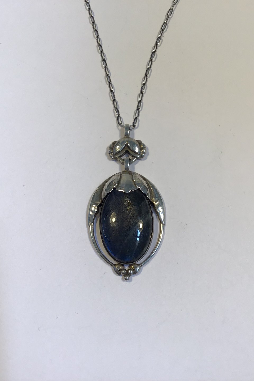 Georg Jensen Silver Necklace w Pendant No 54 (1915-1927) Labradorite L 6.5 cm(2.55 in) Weight 15 gr/0.53 oz (Chain 60 cm/23.62 in)