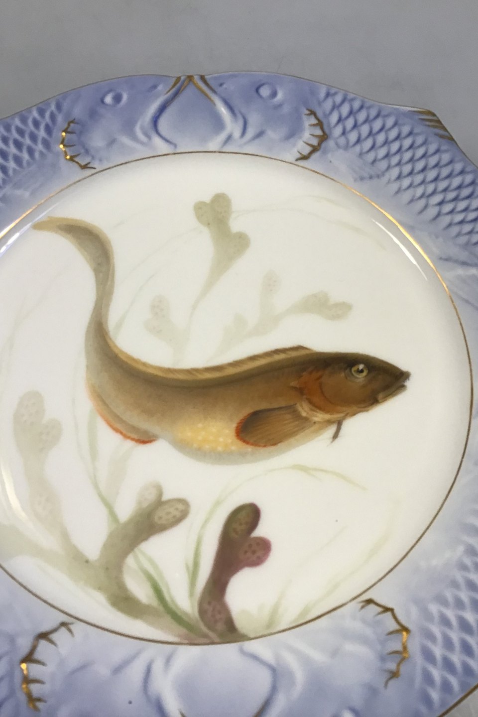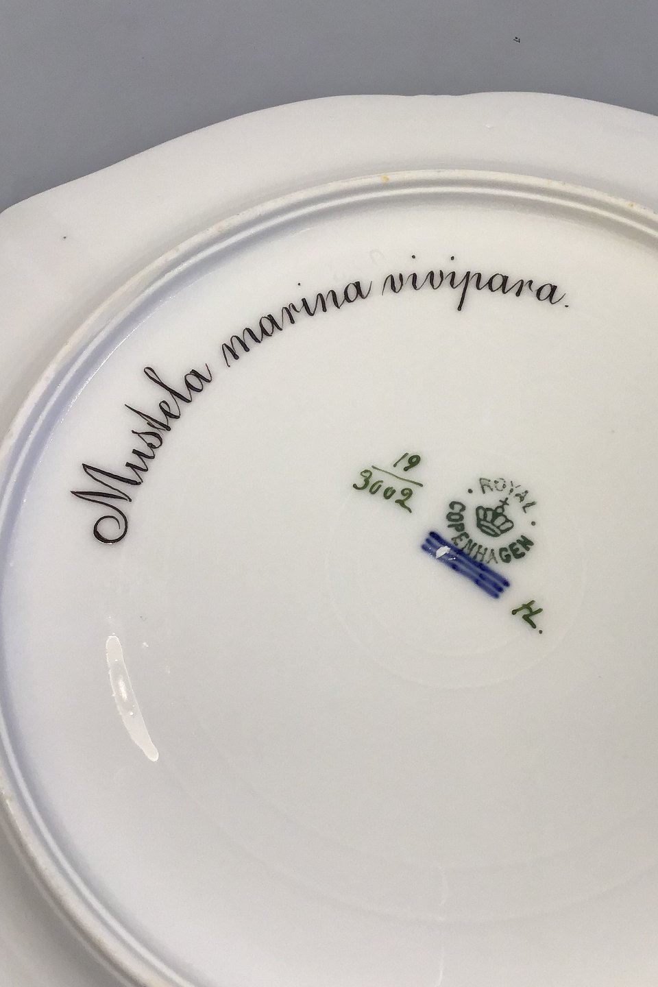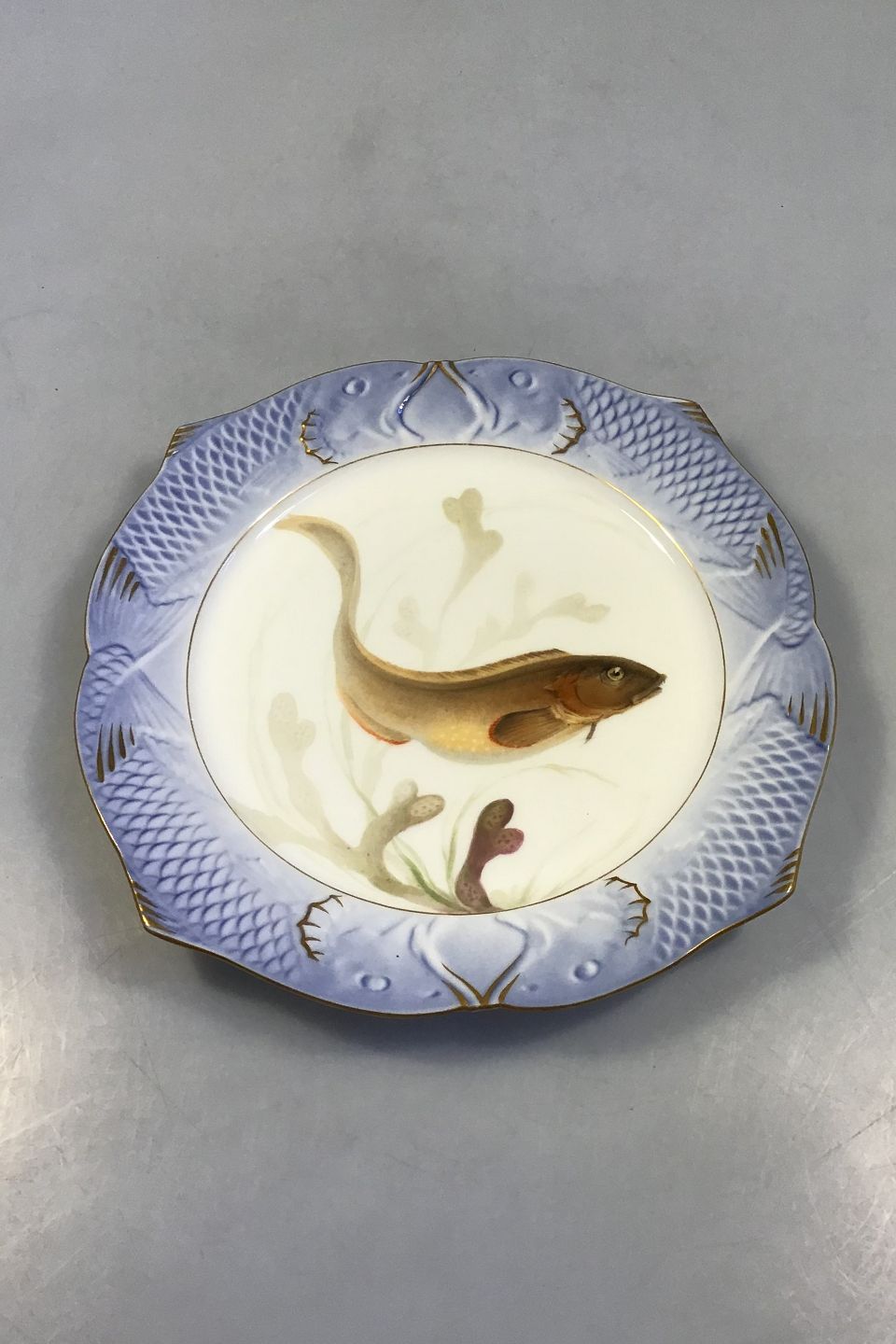 Royal Copenhagen Blå Fisketallerken med Guld No 1212/3002. Med Mustela marina vivipara. 23 cm.