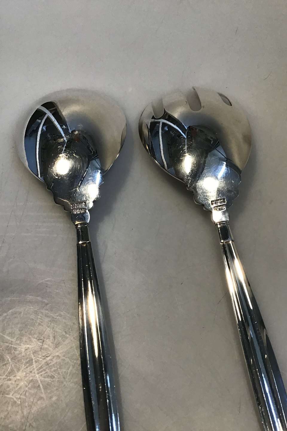 Georg Jensen Sterling Sølv Konge Serveringssæt Medium, No 113+114 Måler Ske 22.8 cm Gaffel 22.6 cm