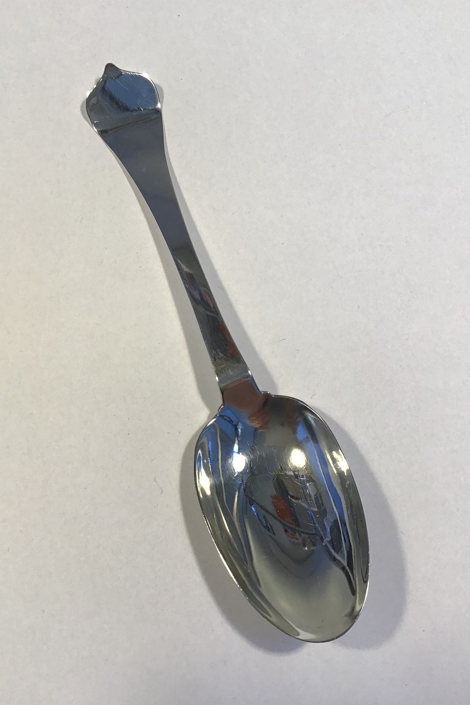 Danish Silver Spoon "Rat Tail Spoon" 1728, back of bowl engraved with rat tail and foliage including owners initials and 1728 Hallmark illegible