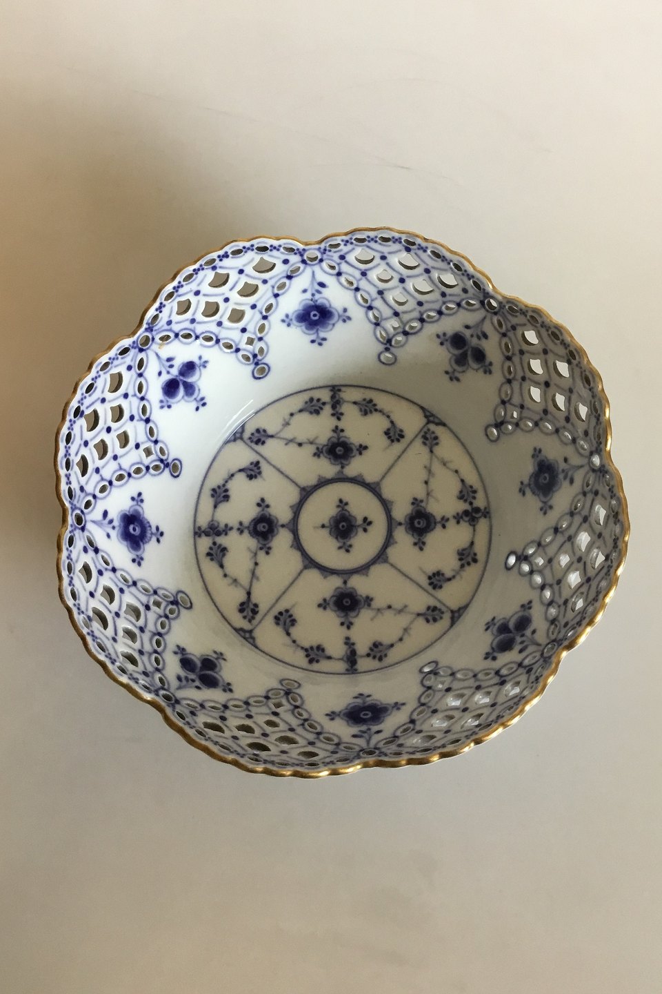 Royal Copenhagen Musselmalet Helblonde med Guld Rund Frugtkurv No 1/1061. Måler 9 cm x 23 cm dia.