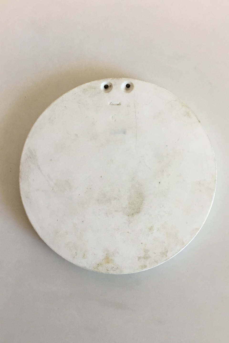 Royal Copenhagen Biscuit Plate "The Night". Copy of relief modeled in Rome in 1815. Measures 14.6 cm / 5 3/4 in. Chip on edge
