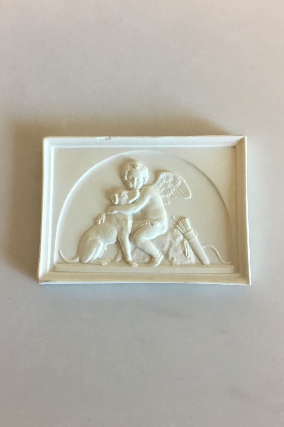 Royal Copenhagen Biscuit Plate Relief "Amor caresses the faithful dog". Copy of relief modeled in Rome in 1831. Measures 9 cm / 3 35/64 in. x 13 cm / 5 1/8 in. Small Chip on edge