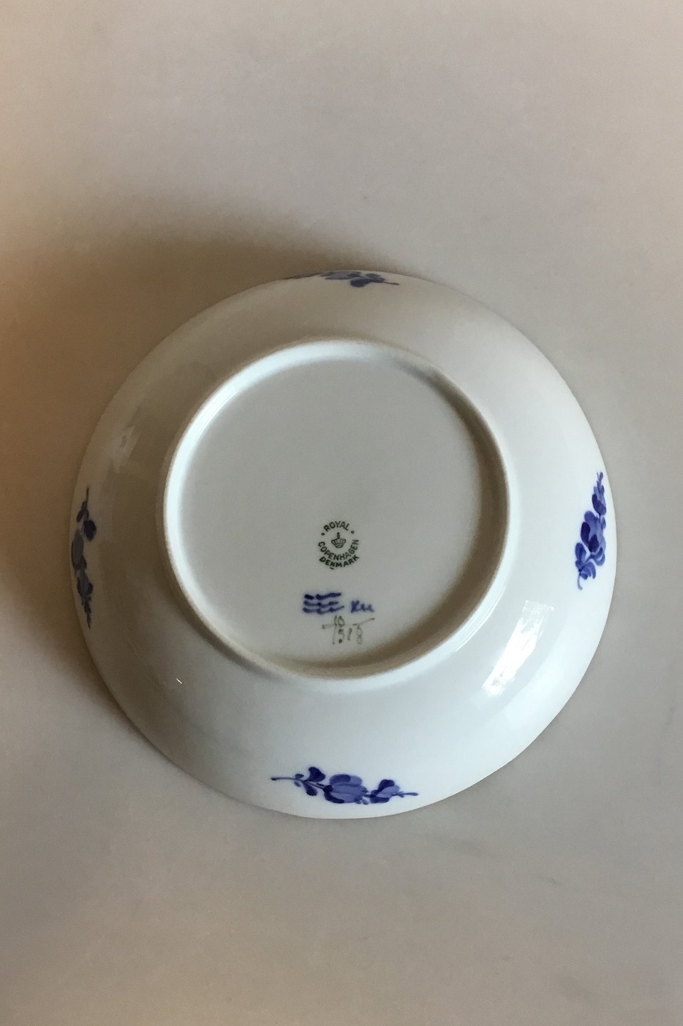 Royal Copenhagen Blå Blomst med Guldkant Rund skål No 1518. Måler 5,5 cm x 21 cm dia.