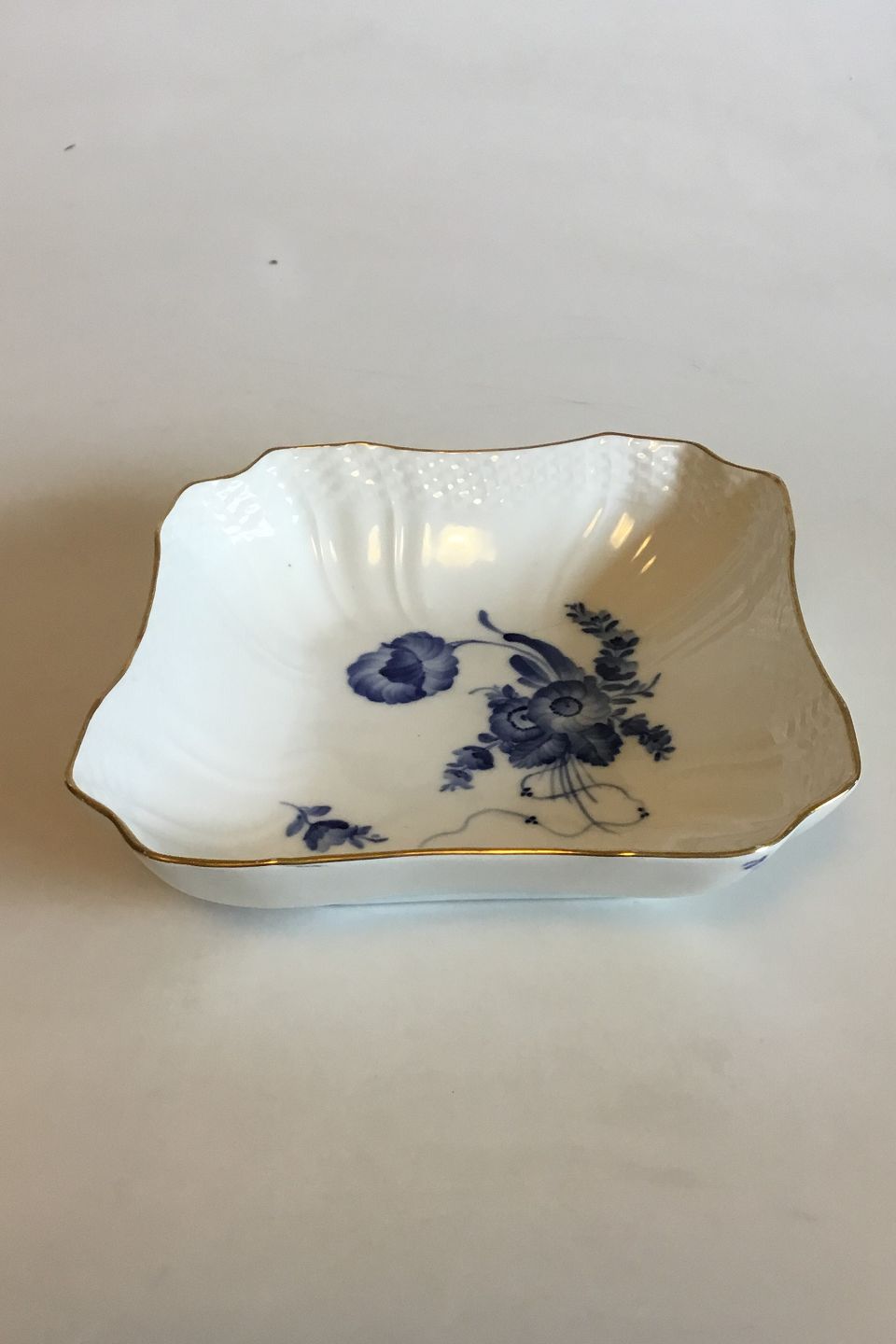 Royal Copenhagen Blå Blomst Svejfet med Guld Firkantet Skål No. 1522. Måler 21,5 cm x 21,5 cm