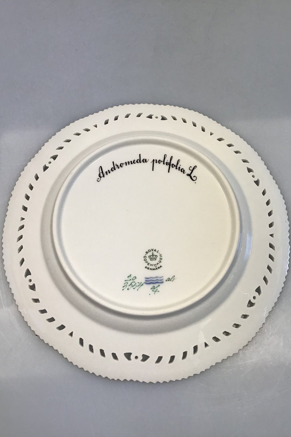 Royal Copenhagen Flora Danica Frokosttallerken No 20/3554 med gennembrudt kant.