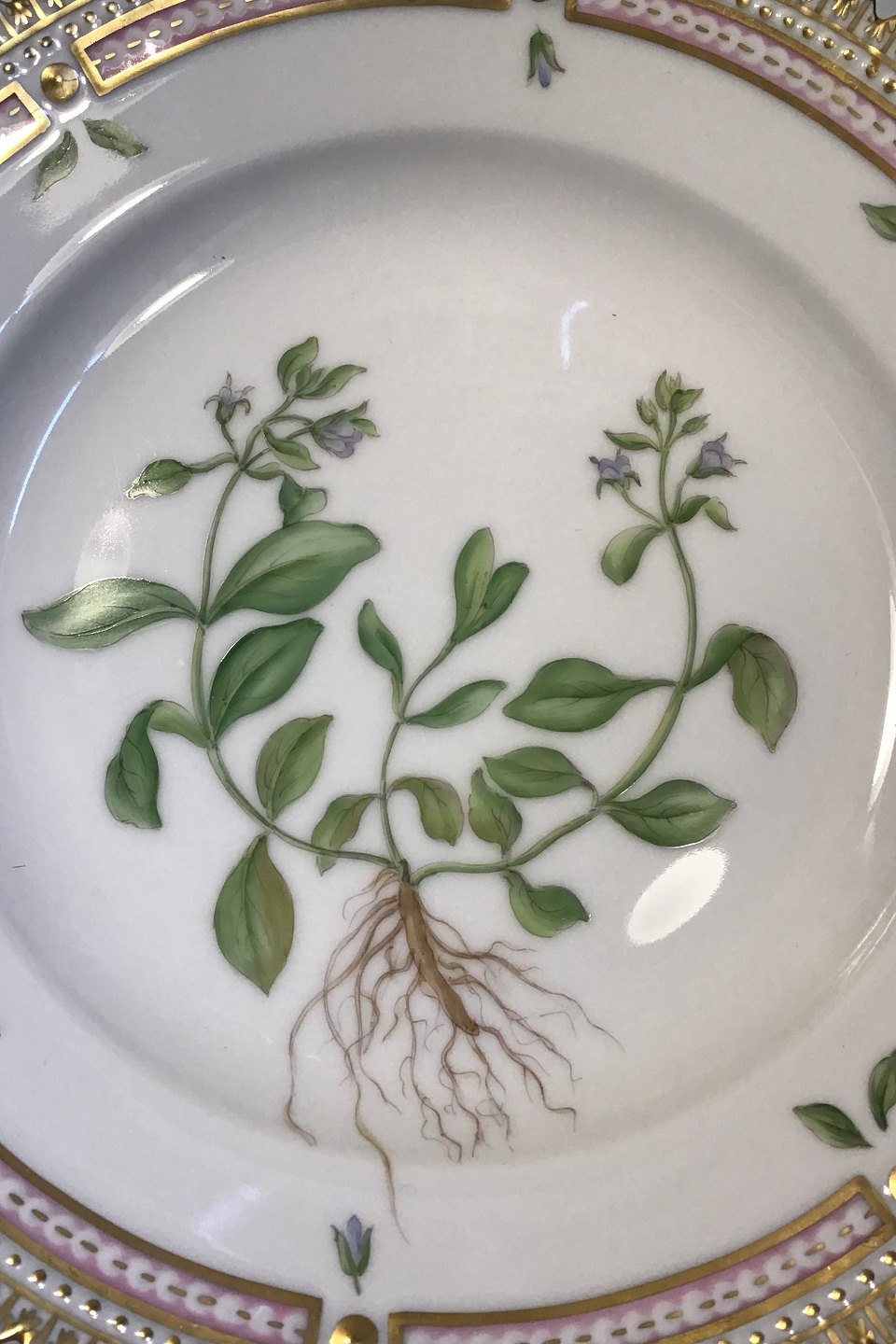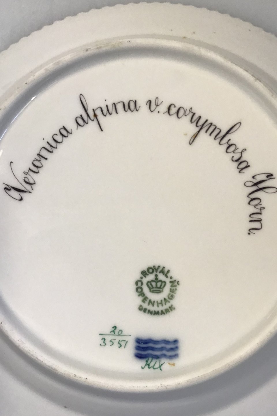 Royal Copenhagen Flora Danica Dessert Tallerken No 20/3551 Latinsk Navn: Veronica alpina v corymbosa Horn(Alpe Ærenpris). Måler 17 cm