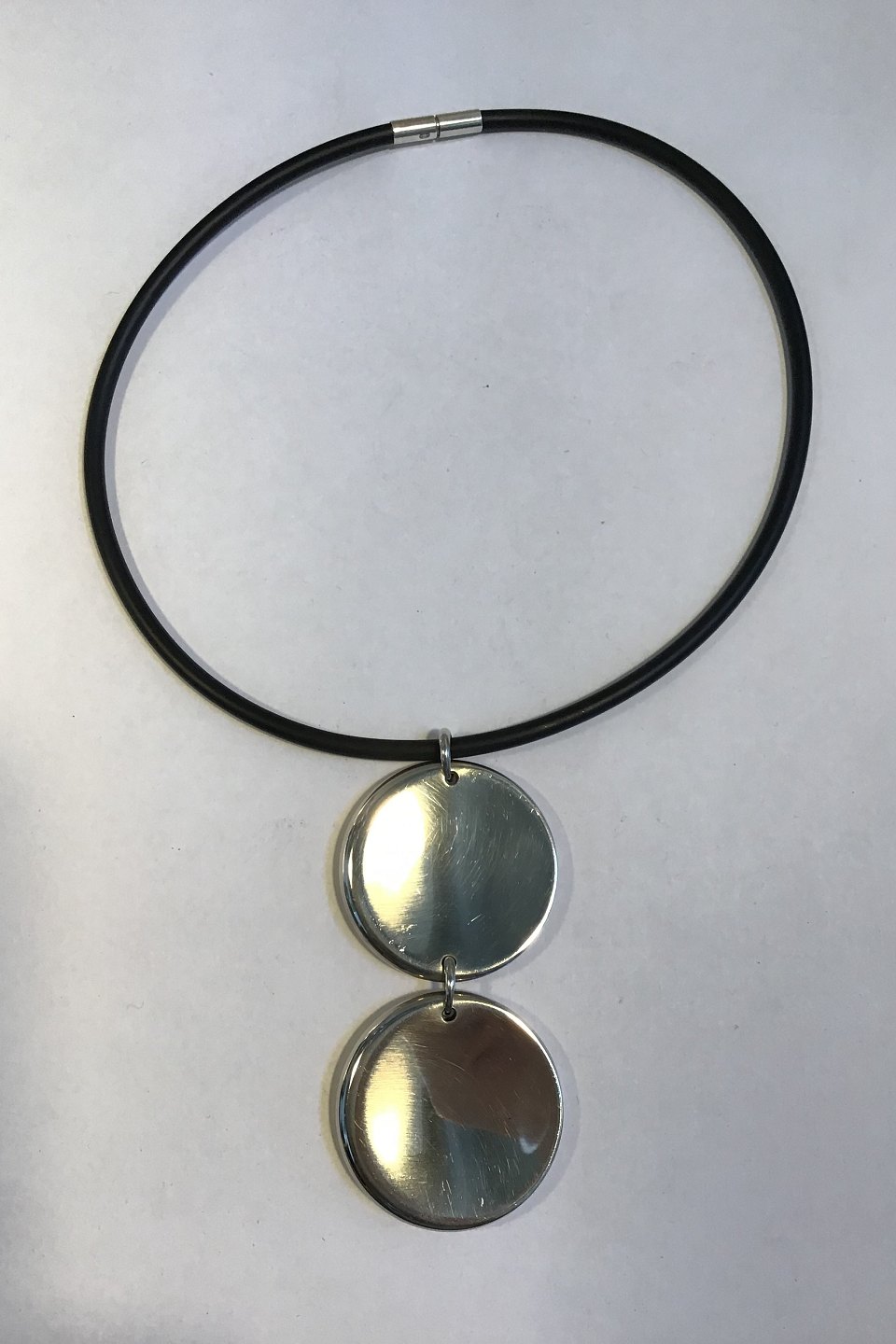 Georg Jensen Rubber Neck Ring and Sterling Silver Pendant No 450 Zero Jacqueline Rabun Neck Ring Diam 13.5 cm Pendant 2 Discs 4 cm(1.57 in) Diam Combined Weight 41.9 gr/1.48 oz