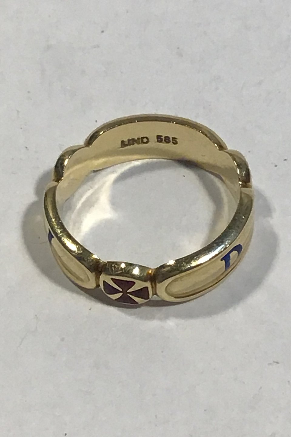 Lind 14K Gold Lodge Ring Maltese Cross and Letter inscription IDS Ring size 68/US12 Weight 10.9 gr/0.38 oz