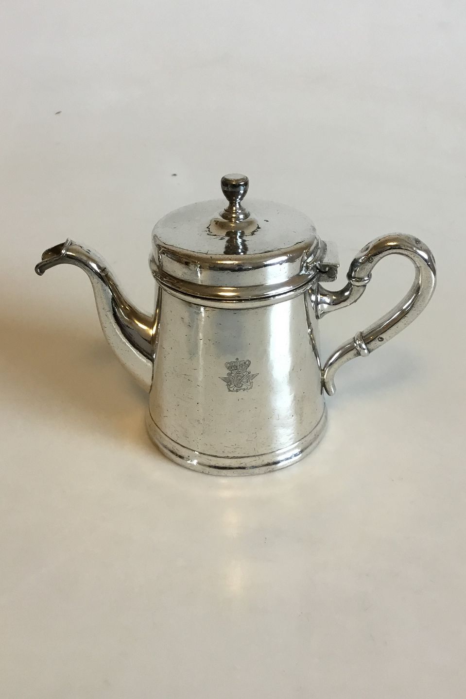 Silver Plated Pitcher with Lid and logo from DSB (Dansih Rail Road). Stamped F. Bloch. Measures 14 cm / 5 33/64 in.