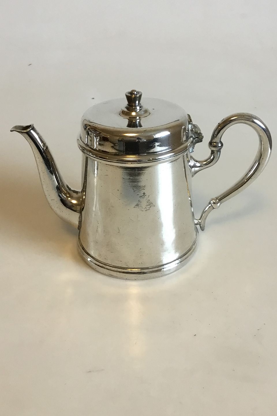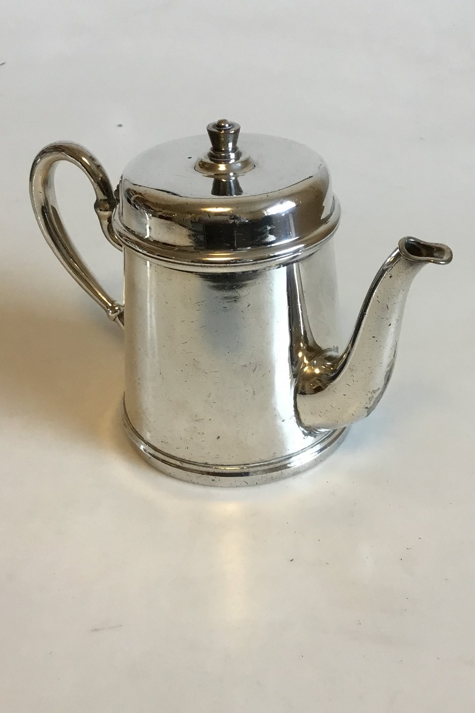 Pletsølv Kande med hængslet låg og DSB logo. Måler 15,5 cm