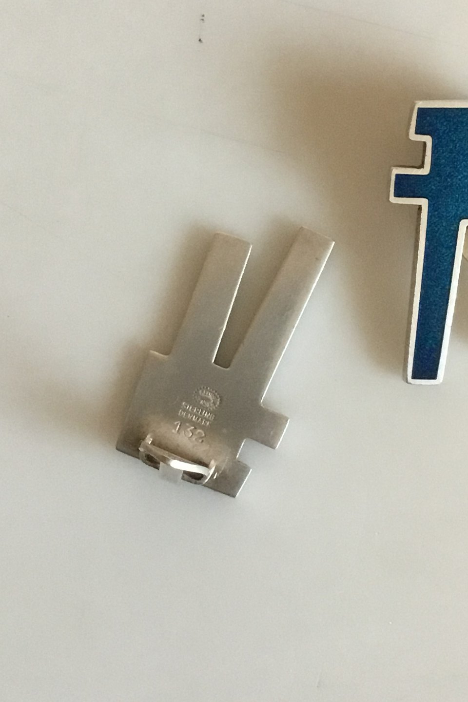 Georg Jensen Sterling Silver Ear Clips with blue enamel No 132. Designed by Bente Bonne. Measures 3 cm / 1 3/16 in. x 1.6 cm / 0 5/8 in. Weighs 9.5 g / 0.34 oz. combined
