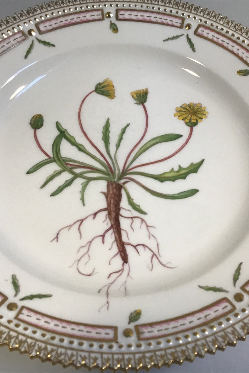 Royal Copenhagen Flora Danica Lunch Plate No 20/3550. Measures 22 cm / 8 21/32 in. 1st Quality. Latin name: "Taraxacum phymatocarpum J Vahl"(Northern dandelion)
