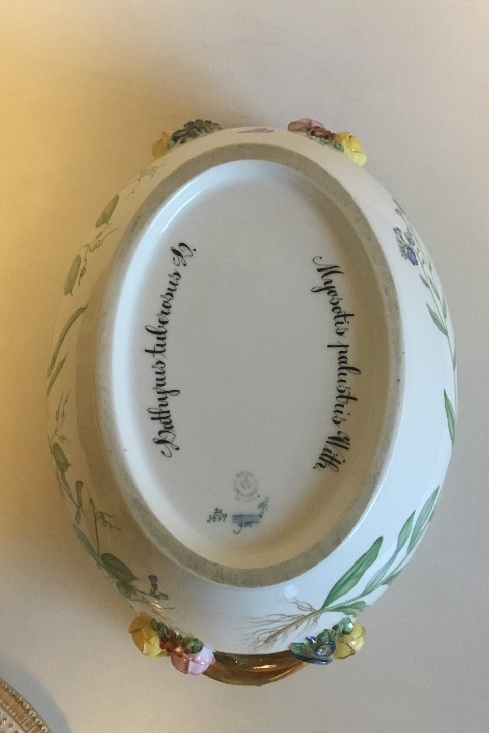 Royal Copenhagen Flora Danica Tureen No 3559 Measures 34 cm x 23 cm x 23 cm(13.38 in x 9.05 in x 9.05 in) Latin names Lathyrus tuberosus L, Nyosotis palustris With. and Rosa mutica Müll.
