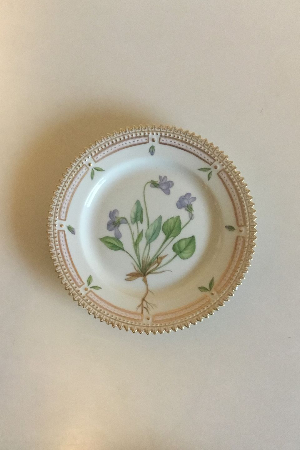 Royal Copenhagen Flora Danica Kagetallerken No 20/3552. Latinsk tekst: Viola umbrosa Fr. Måler 14,3 cm. Med afslag