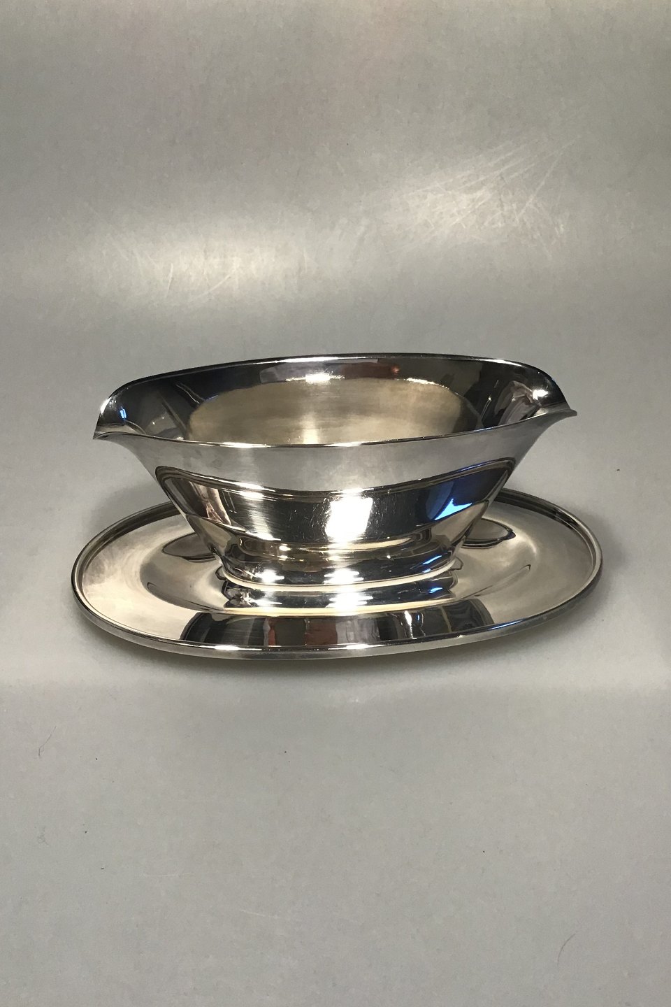 Hans Hansen Sterling Silver Sauce boat No 344 (Anno 1958) Spout and fixed base H 9 cm(3 35/64 in) L 22 cm (8 21/32 in) Weight 613 gr/ 21.6 oz
