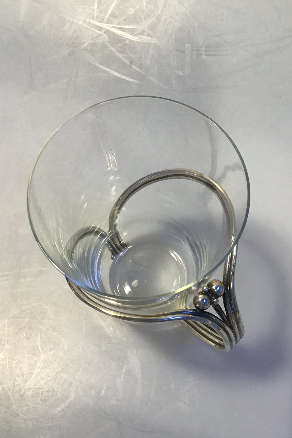 Georg Jensen Sterling Silver Bottle Holder/Toddy Glass Holder No 790 Glass Measures 8.5 cm x 12.5 cm( 3 11/32 in x 4 59/64 in )(at handle 10.5 cm x 12.5 cm)(4 9/64 in x 4 59/64 in) Additional glasses see 391827