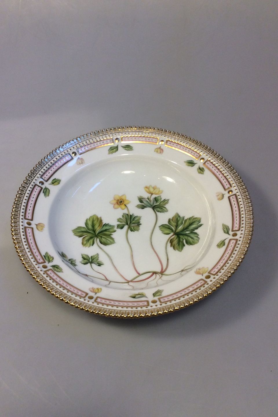 Royal Copenhagen Flora Danica Dyb Tallerken No 20/3546 eller 604. Latinsk navn: Anemone Vahlu Horn. Måler 22,3 cm
