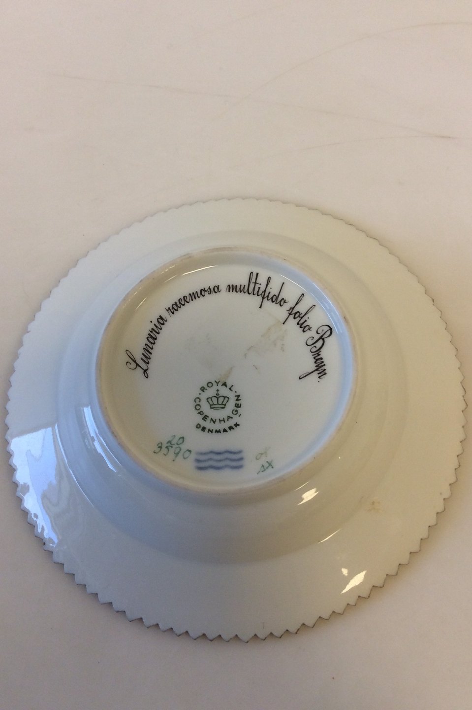 Royal Copenhagen Flora Danica Lille Dyb Tallerken No. 3590. Latinsk Navn: Lunauria raccmosa multifilia Folia Breyn. 14.5 cm diameter. I perfekt stand.